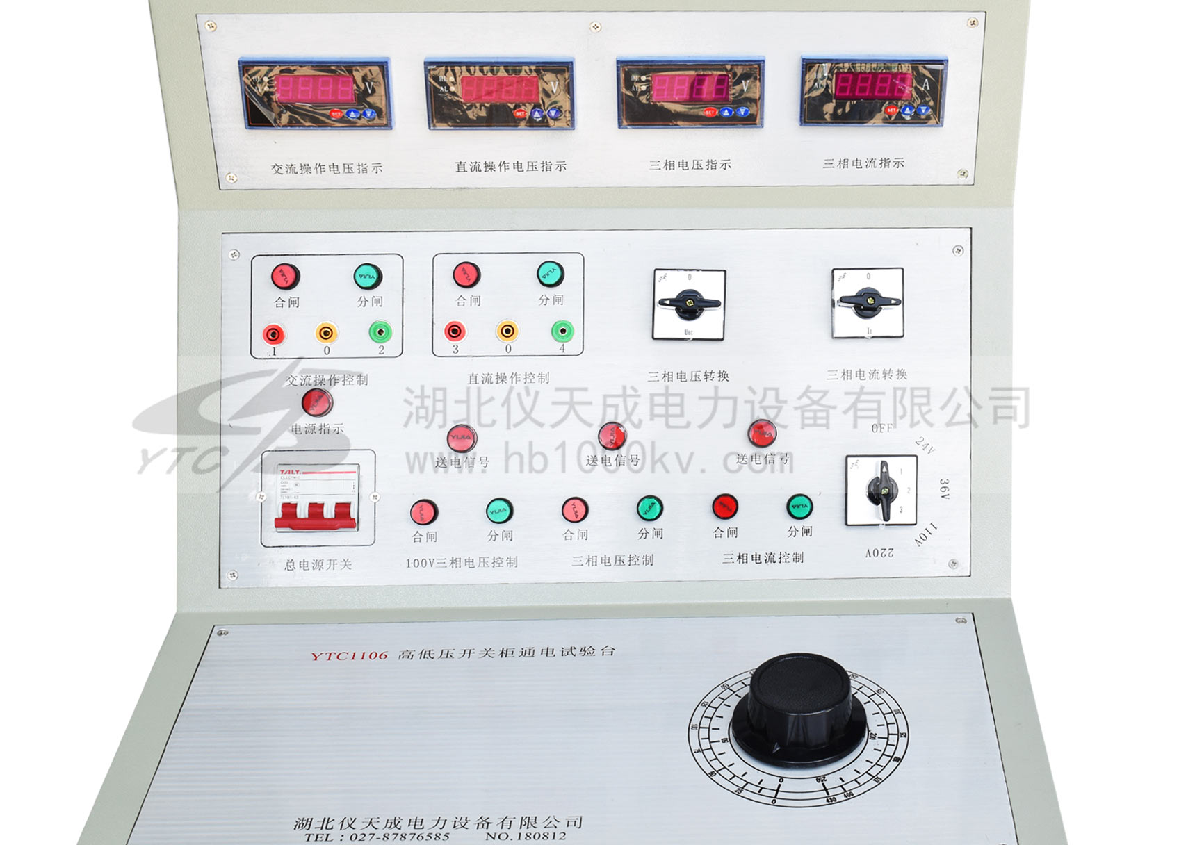 YTC1106高低壓開關(guān)柜通電試驗(yàn)臺(tái),用于高低壓開關(guān)柜生產(chǎn)廠家對(duì)所生產(chǎn)的高低壓開關(guān)柜進(jìn)行出廠前的各項(xiàng)通電試驗(yàn)。