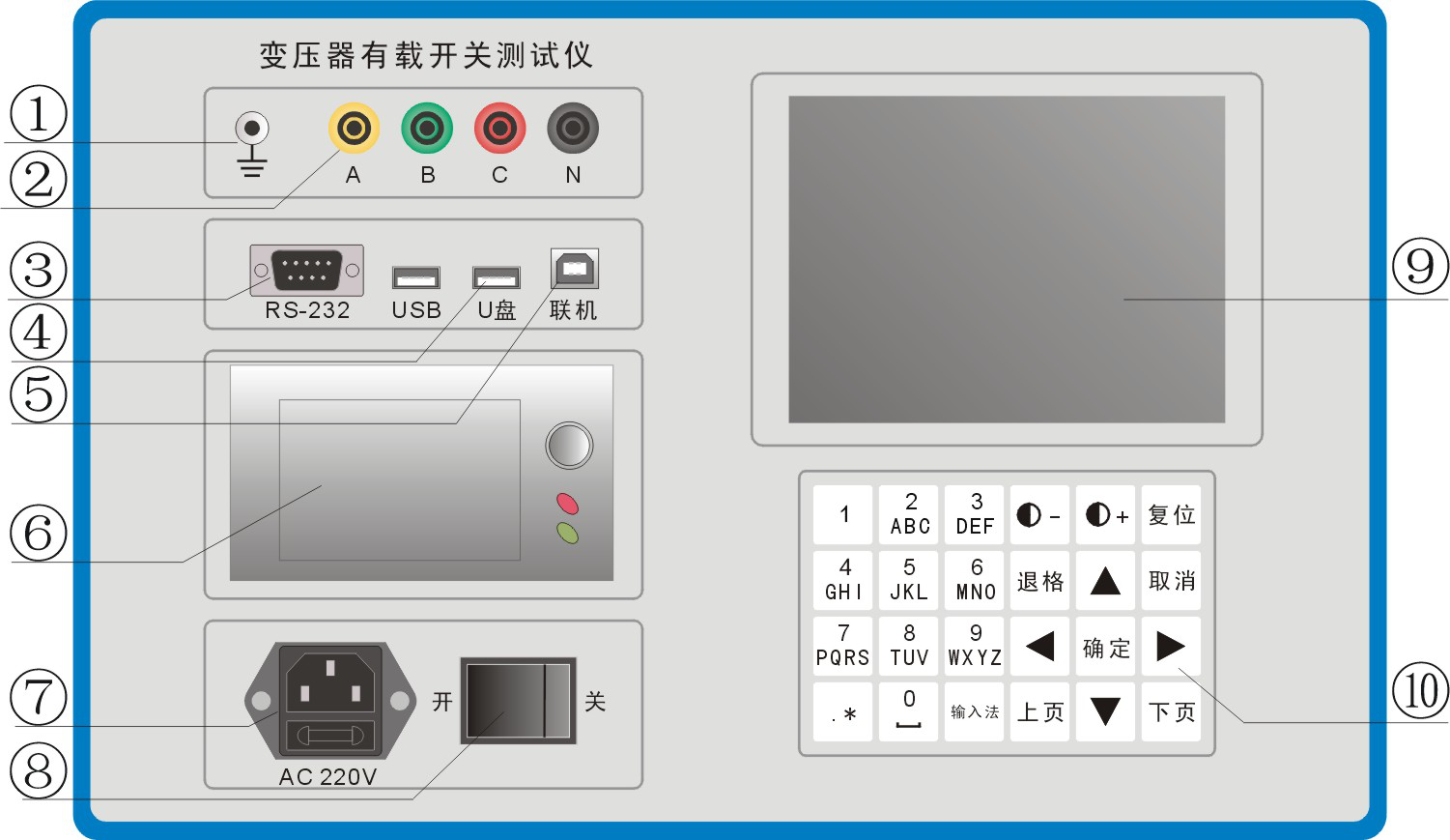 變壓器有載開(kāi)關(guān)測(cè)試儀面板介紹以及產(chǎn)品概述