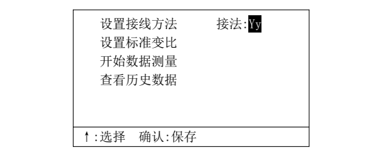 此時 按“ ↑ ” 鍵選擇接法,按“確認” 鍵保存接法,返回主菜單