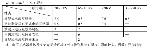 1.互感器的繞組 tanδ測量電壓應在 10kV 測量,tanδ不應大于表 9.0.3 中數據。當對絕緣有懷疑時,可采用高壓法進行試驗,在(0.5~1) Um√3 范圍內進行,tanδ變化量不應大于0.2% ,電容變化量不應大于0.5%;