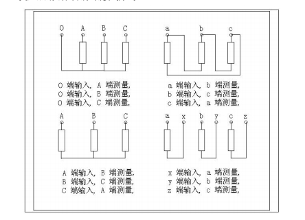 變壓器的幾種常用檢測(cè)接線方式:
