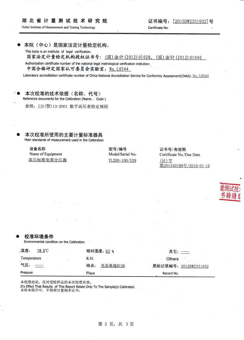 電壓等級(jí) AC:100kV    DC:100kV